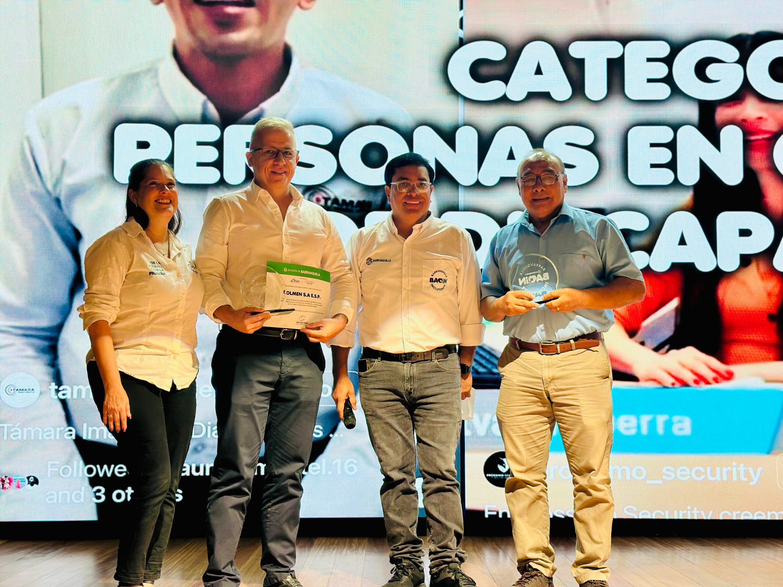 La Alcaldía de Barranquilla otorgó a Dolmen el Premio BAQiN 2025, en la categoría Iniciante, en reconocimiento a su política de inclusión laboral, que ha permitido la vinculación de tres personas con discapacidad auditiva que hoy se desempeñan como Técnicos Operativos Guardaparques.